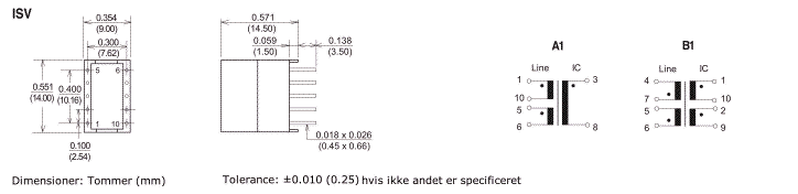 Elektriske Specifikationer ved 25°C   Omsætningsforhold: Fed = IC side viklinger